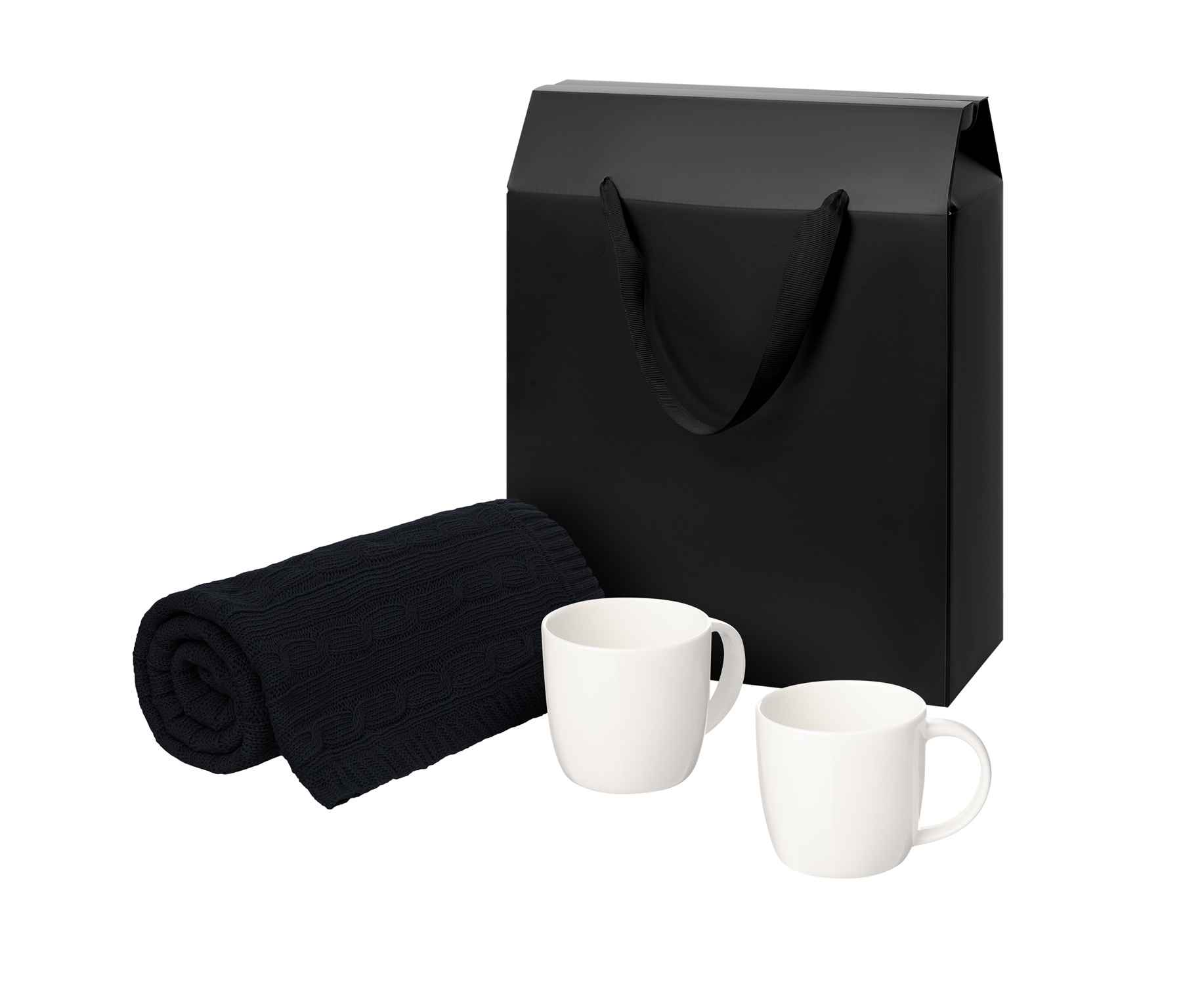 Подарочный набор Dafna, Fado, темно-сиий в черной коробке-пакете (две фарфоровых кружки, плед)