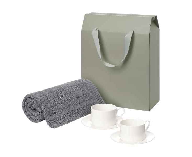 Подробнее о Portobello Подарочный набор Мокко (Mokko), Фадо (Fado), серый в коробке-пакете (две чайных пары, плед)