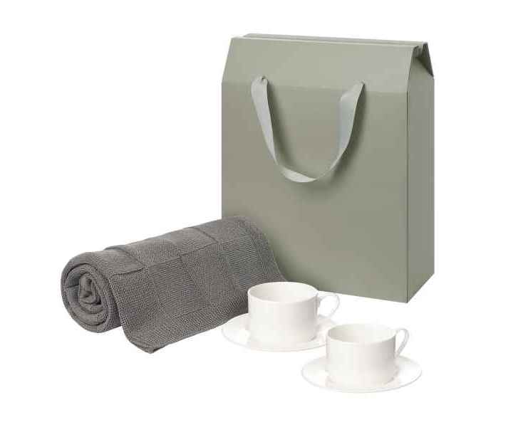 Подробнее о Portobello Подарочный набор Мокко (Mokko), Селла (Сella), серый в коробке-пакете (две чайных пары, плед)