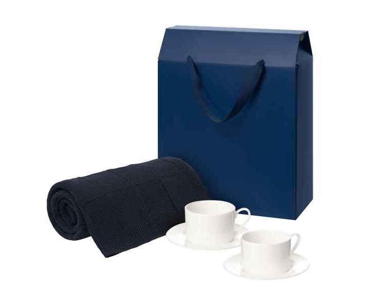 Подробнее о Portobello Подарочный набор Мокко (Mokko), Селла (Сella), синий в коробке-пакете (две чайных пары, плед)