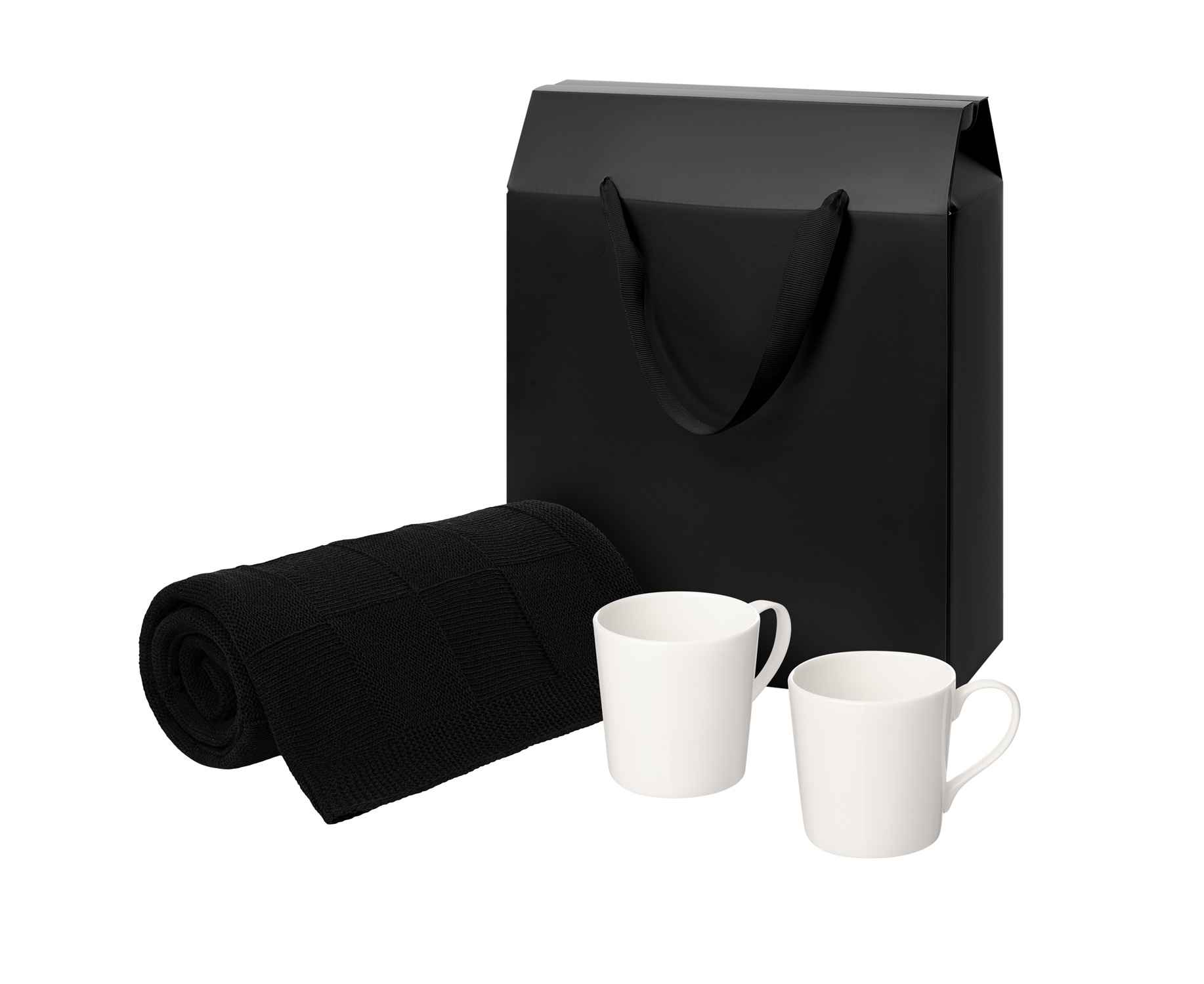 Подарочный набор Siena, Cella, черный в коробке-пакете (две фарфоровых кружки, плед)