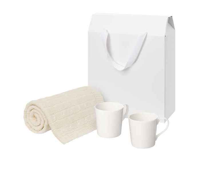 Подробнее о Portobello Подарочный набор Сиена (Siena), Фадо (Fado), бежевый в коробке-пакете (две фарфоровых кружки, плед)
