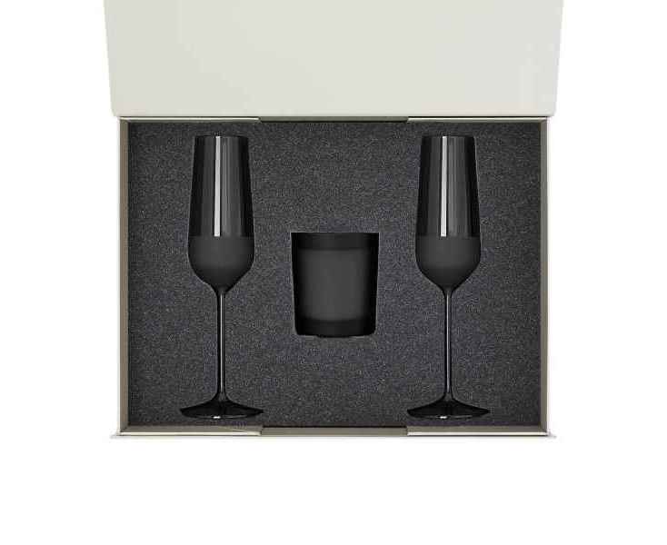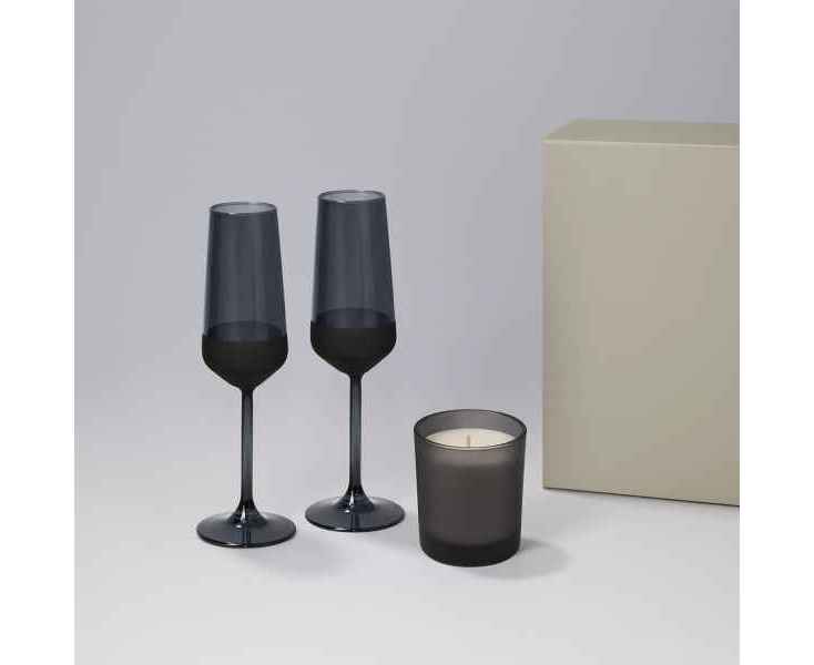 Подробнее о Portobello Подарочный набор свеча Enigma + 2 бокала для шампанского Black Edition в серой коробке