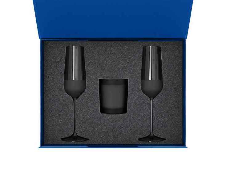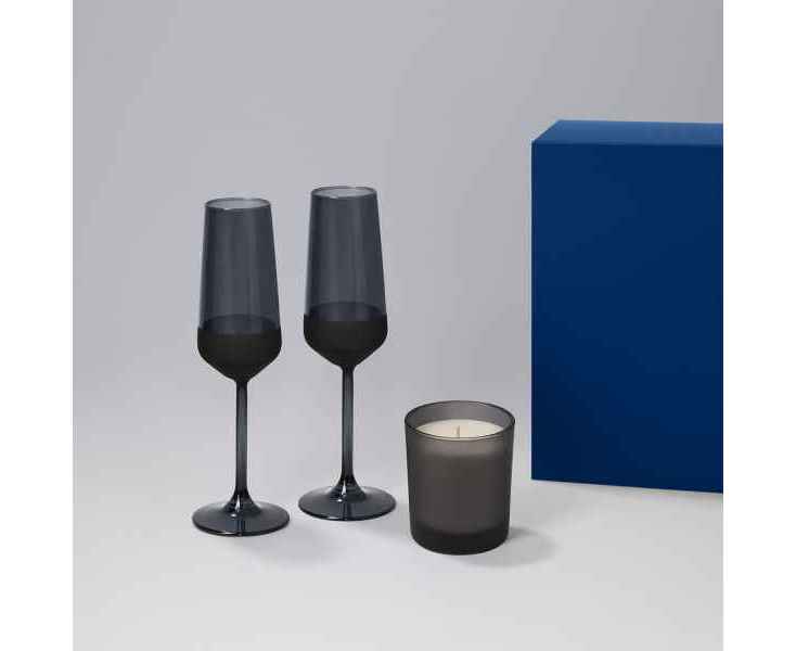 Подробнее о Portobello Подарочный набор свеча Enigma + 2 бокала для шампанского Black Edition в синей коробке