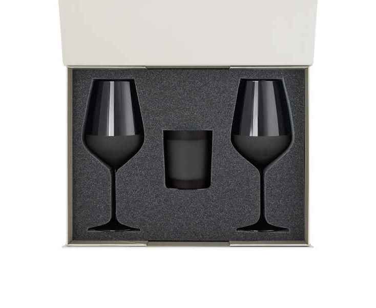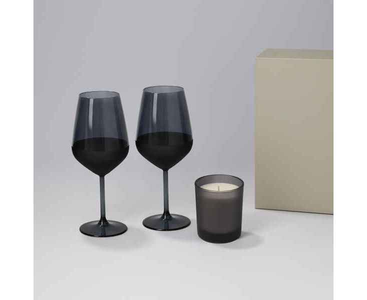 Подробнее о Portobello Подарочный набор свеча Enigma + 2 бокала для вина Black Edition в серой коробке