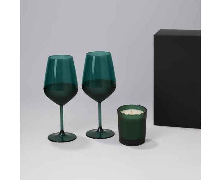 Подробнее о Portobello Подарочный набор свеча Enigma + 2 бокала для вина Emerald в черной коробке
