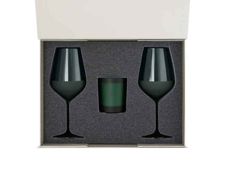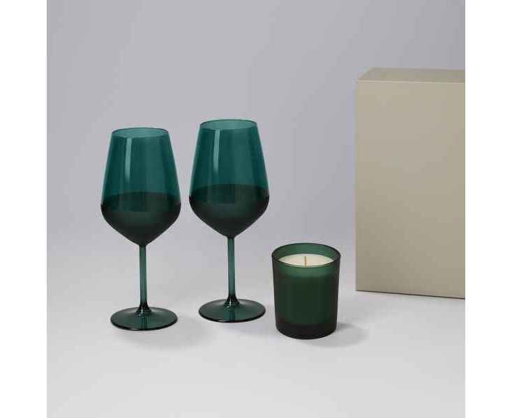 Подробнее о Portobello Подарочный набор свеча Enigma + 2 бокала для вина Emerald в серой коробке