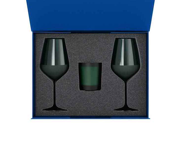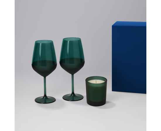 Подробнее о Portobello Подарочный набор свеча Enigma + 2 бокала для вина Emerald в синей коробке