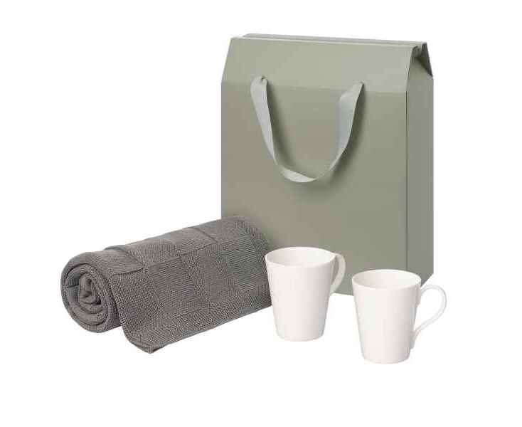 Подробнее о Portobello Подарочный набор Веста (Vesta), Селла (Cella), серый в коробке-пакете (две фарфоровых кружки, плед)