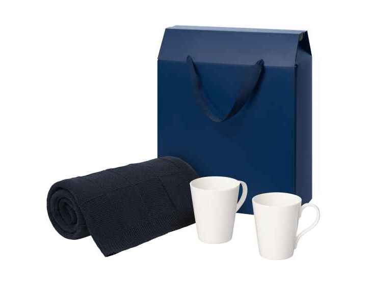 Подробнее о Portobello Подарочный набор Веста (Vesta), Селла (Cella), синий в коробке-пакете (две фарфоровых кружки, плед)