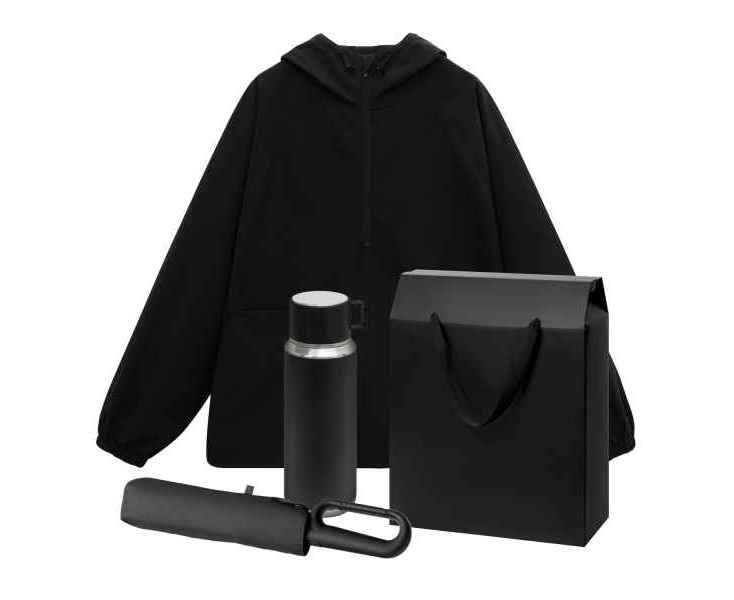 Премиум набор с одеждой RISSMAN (ветровка, зонт, термос), черный, XS/S