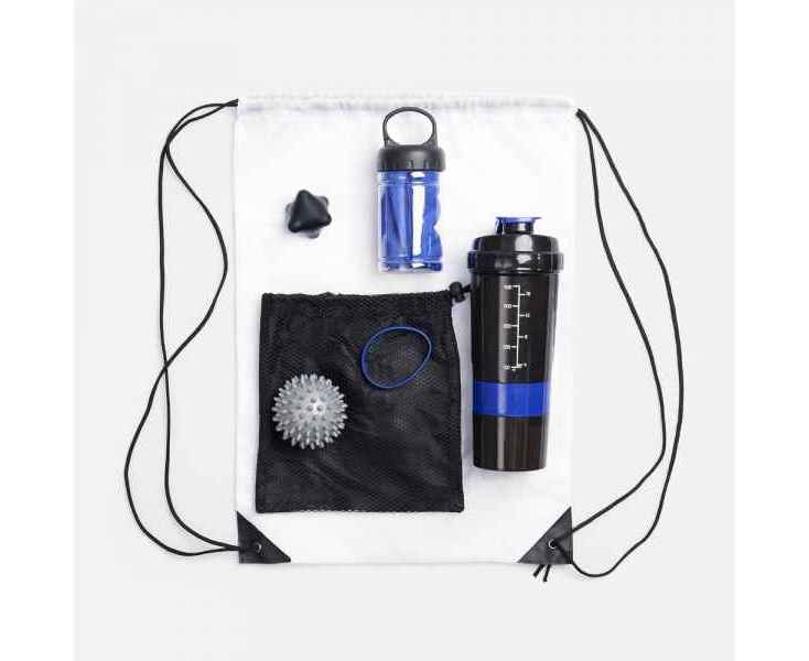 Чтобы оздоровительные фитнес-мероприятия приносили только удовольствие, в практичном рюкзаке-мешке собраны продуманные аксессуары: охлаждающее полотенце, спортивный шейкер для смешивания самых полезных коктейлей, массажные мячики для самостоятельного миофасциального релиза после занятий, а также силиконовый браслет, без которого не обойтись членам клуба.