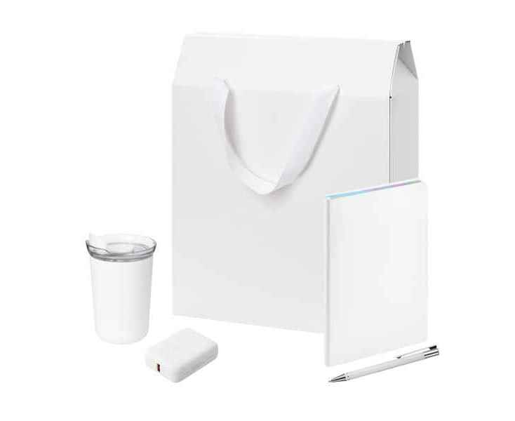 Подарочный набор Welcome Pack, белый (термокружка, ежедневник, ручка, ЗУ, коробка-пакет)