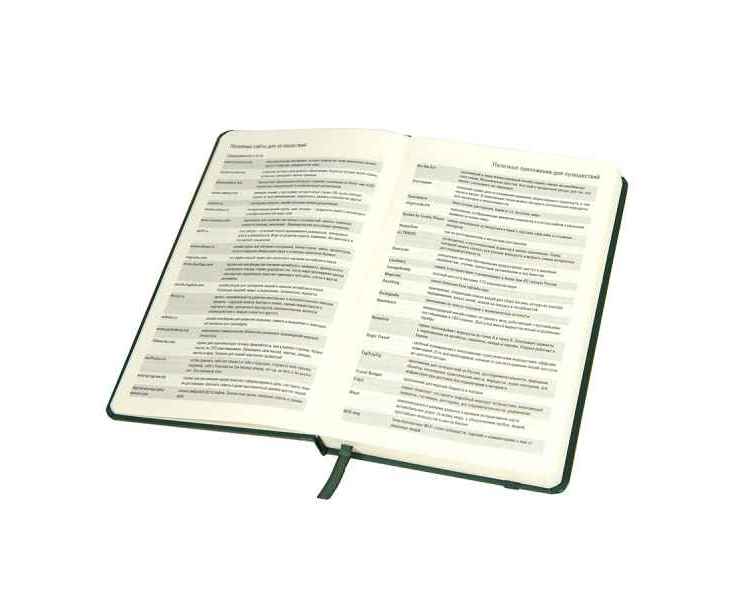 Цвет обложки, близкий к пантону Black С,, Размер 130*210 мм, переплет твердый Обложка PVC Блок недатированный, в линейку Скругленные углы Бумага кремовая, плотность 70г/м2 Форзац/нахзац кремовые 272 страницы 8 инфостраниц для путешествий Классическая резинка, 7мм Ляссе в цвет обложки Упаковка прозрачный полибэг