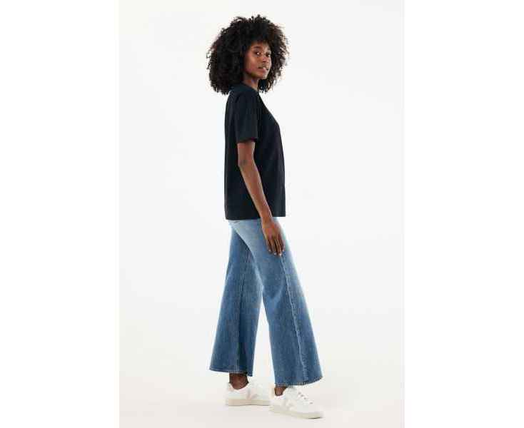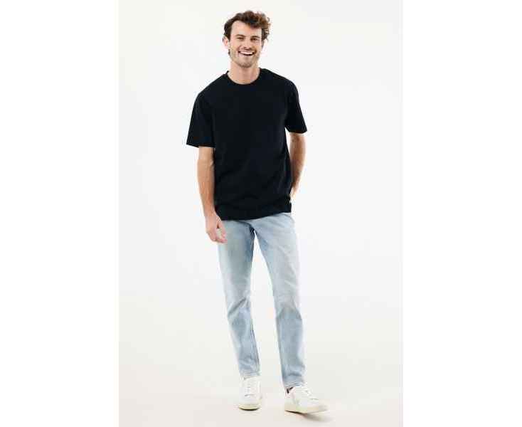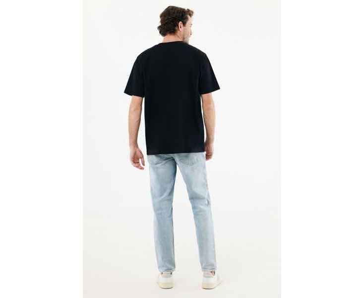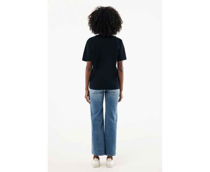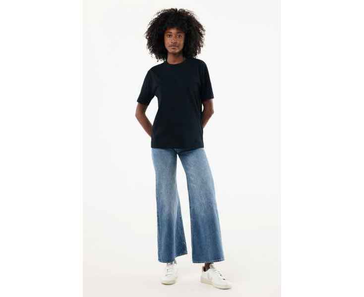 Футболка современного кроя выполнена из 100% хлопка, который на 50% состоит из переработанного и на 50% из органического. Круглый вырез и плотная ткань делают эту модель универсальной.