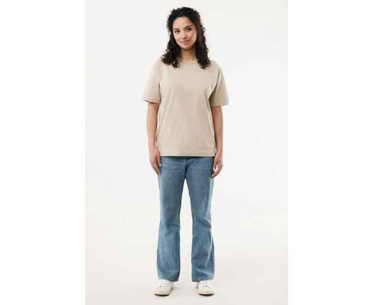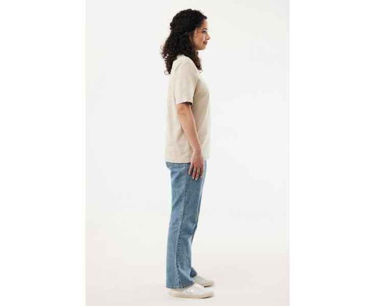 Футболка современного кроя выполнена из 100% хлопка, который на 50% состоит из переработанного и на 50% из органического. Круглый вырез и плотная ткань делают эту модель универсальной.