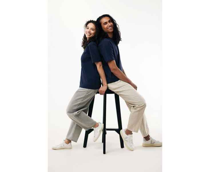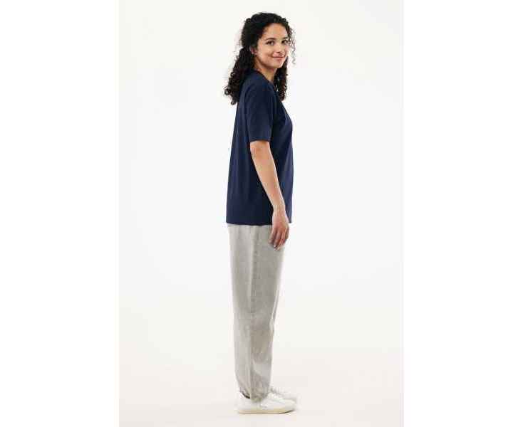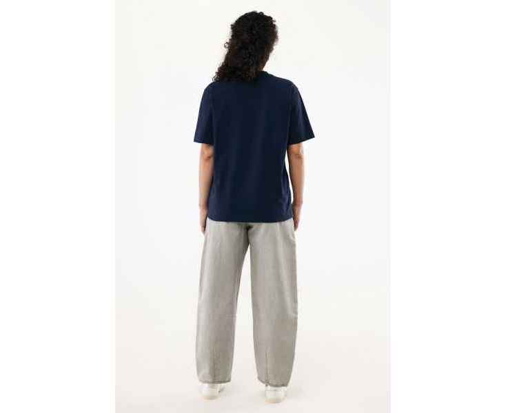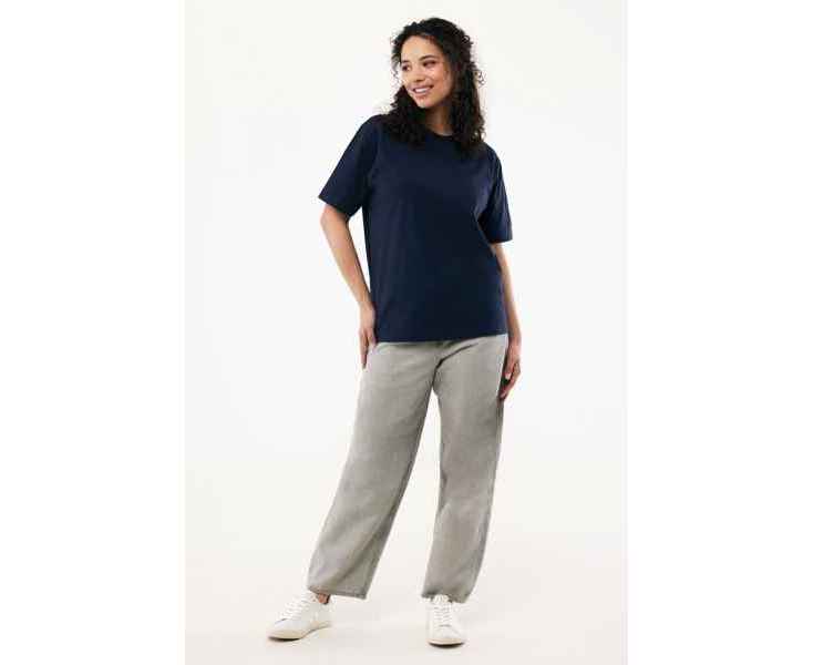 Футболка современного кроя выполнена из 100% хлопка, который на 50% состоит из переработанного и на 50% из органического. Круглый вырез и плотная ткань делают эту модель универсальной.