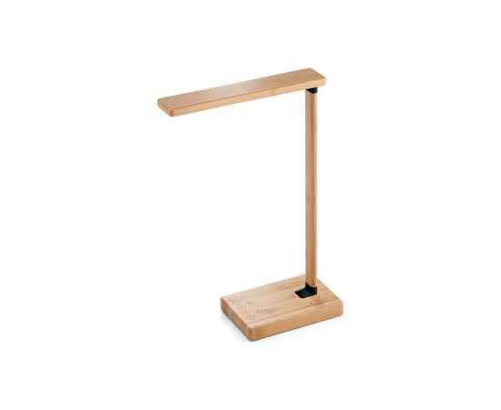 Бамбуковая складная настольная лампа с беспроводным зарядным устройством, с 16 белыми и 9 желтыми светодиодами. Беспроводное зарядное устройство с быстрой зарядкой, мощностью до 10 Вт, со входами 5В/2А, 9В/2А и выходом USB-A с питанием 5В/2А. В комплект входит кабель для зарядки USB-C. Поставляется в подарочной коробке из крафтовой бумаги. As the product is made from natural materials, the colour and size of the product and the printing result may vary between products. 432 x 110 x 37 мм