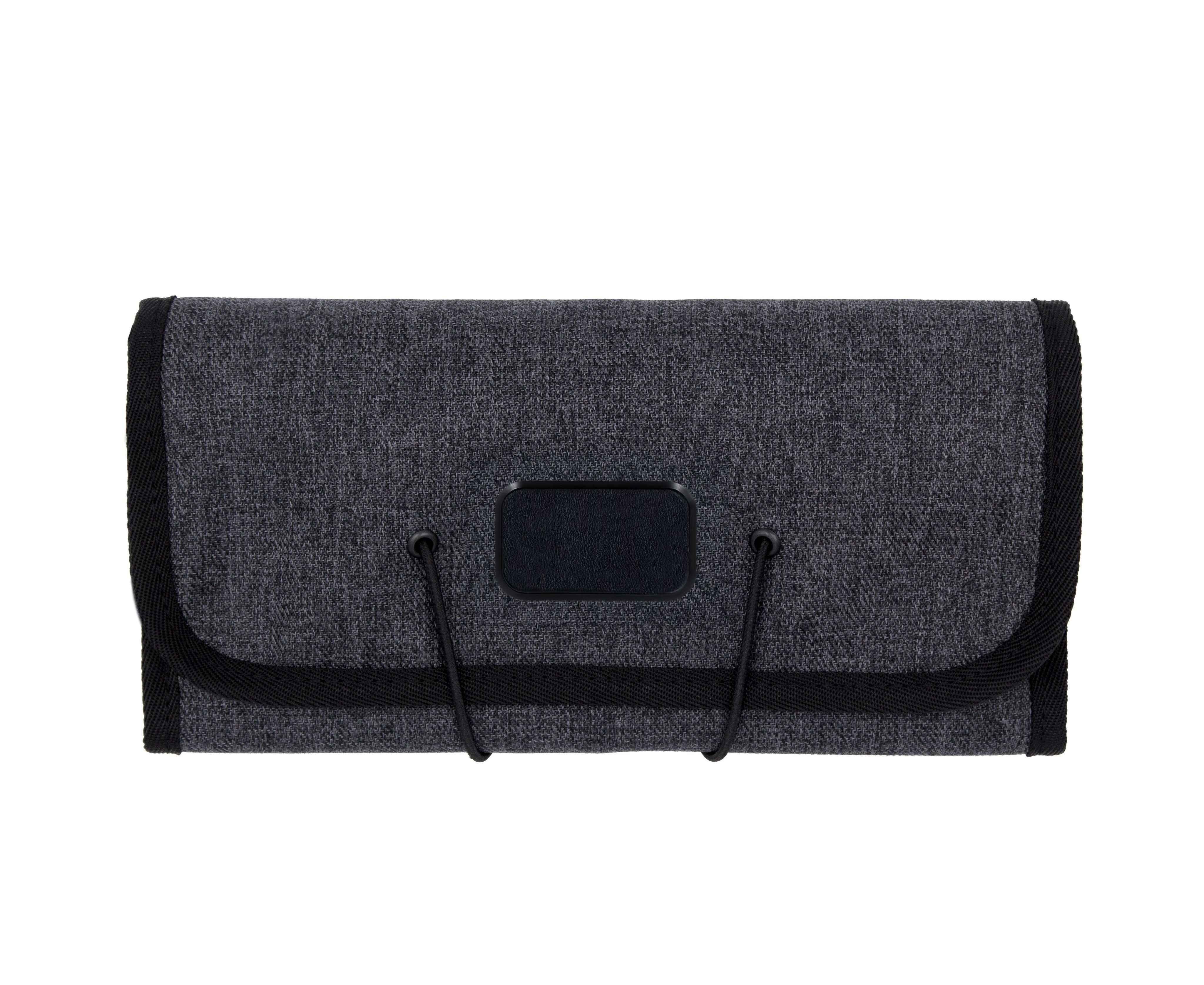 Компактный органайзер для аксессуаров с гибкой конструкцией и эластичной застёжкой. Выполнен из водо- и грязеотталкивающего полиэстера 600D премиум-класса. Внутри предусмотрены 6 эластичных петель для кабелей, ручек, кистей и инструментов, 3 сетчатых кармана для USB, SD и SIM-карт и 2 открытых отделения для зарядного устройства, адаптера или мыши. Произведён из 1,5 переработанных ♻ PET-бутылок (по 500 мл) и сертифицирован по стандарту RCS (Recycled Claim Standard).