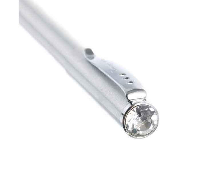 Ручка шариковая Pierre Cardin ACTUEL. Корпус алюминиевый с лакированным покрытием. Детали дизайна - сталь с хромированным покрытием. Магнитный колпачок. Кристалл белого цвета на торце.Цвет - серебристый металлик. Упаковка Р-1