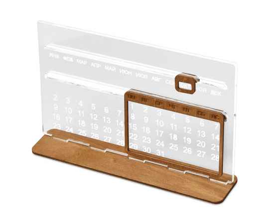Элегантный вечный календарь не требует замены каждый год. Простая система смены дат позволяет быстро настроить текущий день, месяц и число, оставаясь всегда актуальным. Минималистичный дизайн с тёплой текстурой дерева делает календарь стильным элементом рабочего стола, книжной полки или оригинальным подарком, который будет радовать долгие годы.