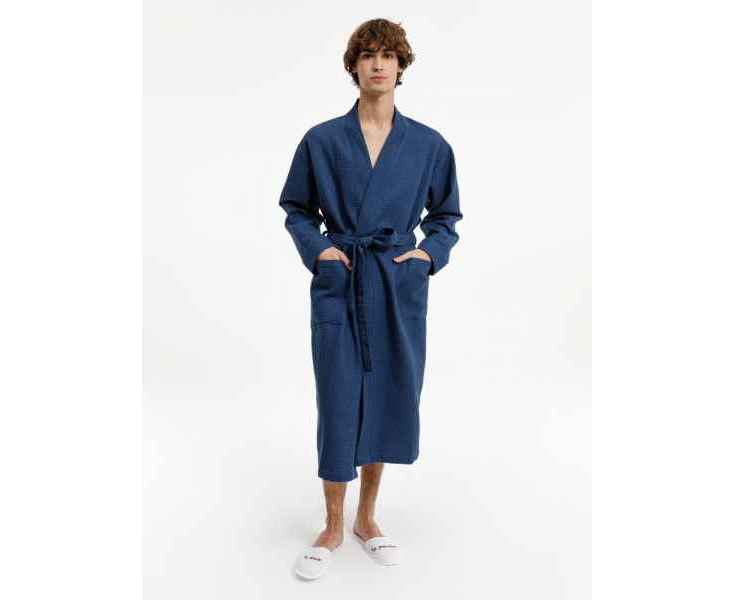 Подробнее о Сделано в России Халат вафельный Kimono, темно-синий, размер M/L