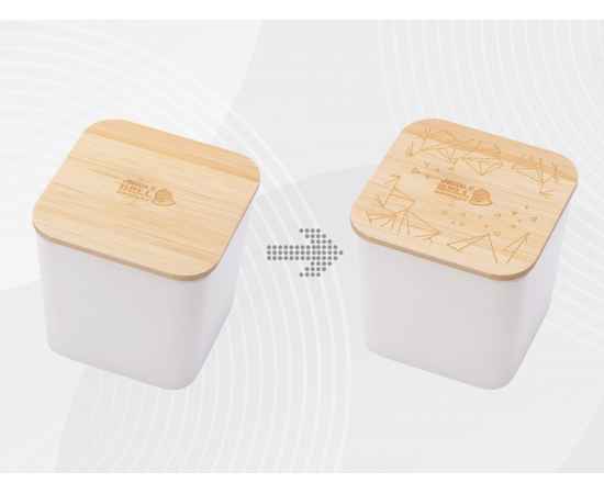 Квадратная ёмкость для хранения с бамбуковой крышкой изготовлена на 75% из натуральных материалов. Она подходит для хранения продуктов бакалеи: чая, кофе, сахара, соли и пряностей, круп и макаронных изделий, а также орехов и сухофруктов. Контейнер абсолютно герметичен благодаря силиконовому уплотнителю по периметру крышки, что позволяет чаю, кофе и вашим любимым специям не потерять свой аромат.