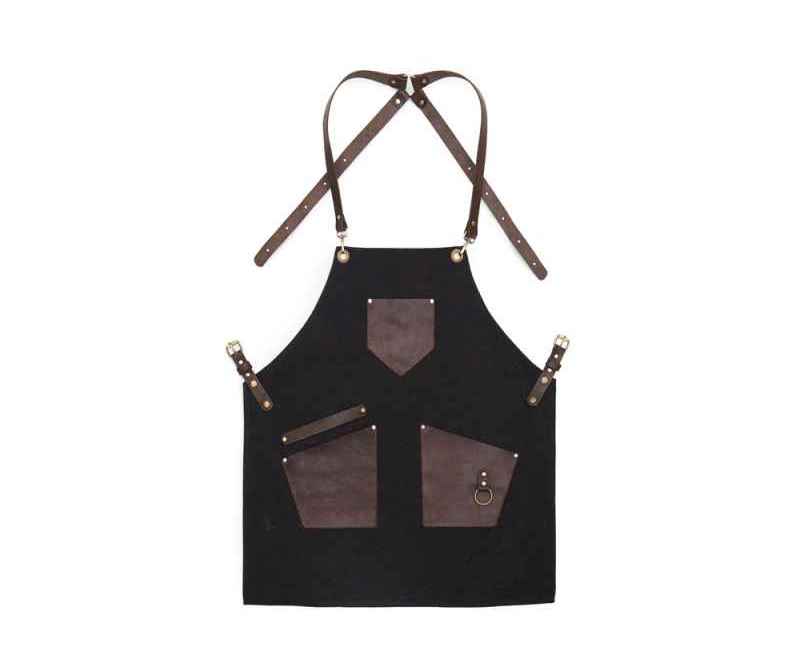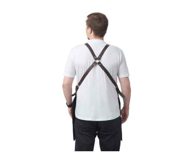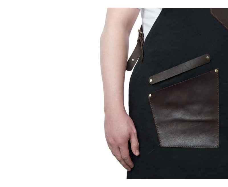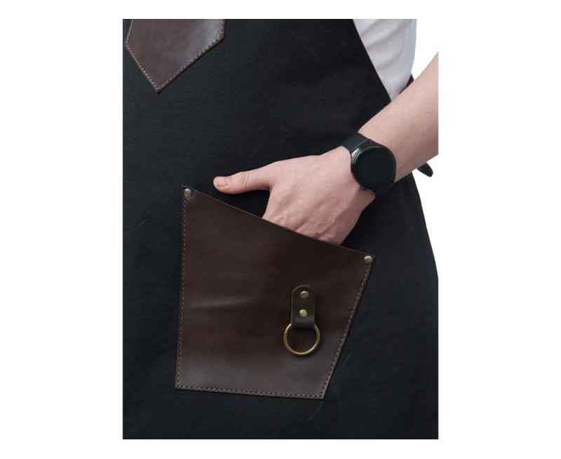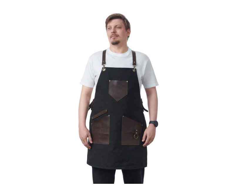 - Эстетика и стиль: Черный цвет фартука в сочетании с коричневыми кожаными элементами создает стильный и современный образ. Этот фартук подойдет как для профессиональной, так и для домашней кухни, а также для барбекю и других активных хобби.
