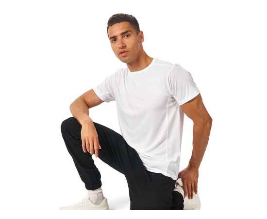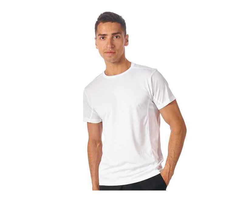 Мужская спортивная футболка выполнена из двух разных видов полотна: спинка и перед из интерлока имеют гладкую поверхность, а декоративные вставки выполнены из спортивной сетки ячеистой структуры. Благодаря наличию таких вставок воздух свободно проникает под футболку, охлаждая кожу во время спортивных нагрузок.