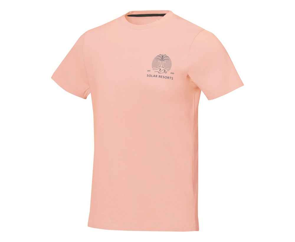 Футболка с короткими рукавами Nanaimo. Стандартный покрой. Атласная лента от плеча к плечу. Резинка 1х1 на воротнике. Приятный на ощупь материал. Принт сзади. Удобная для нанесения поверхность материала. Предварительная усадка. Детали со швами Pick-Stitch. Однослойная джерси гладкого переплетения, 100% чесаный хлопок кольцевого способа прядения. 160 г/м².