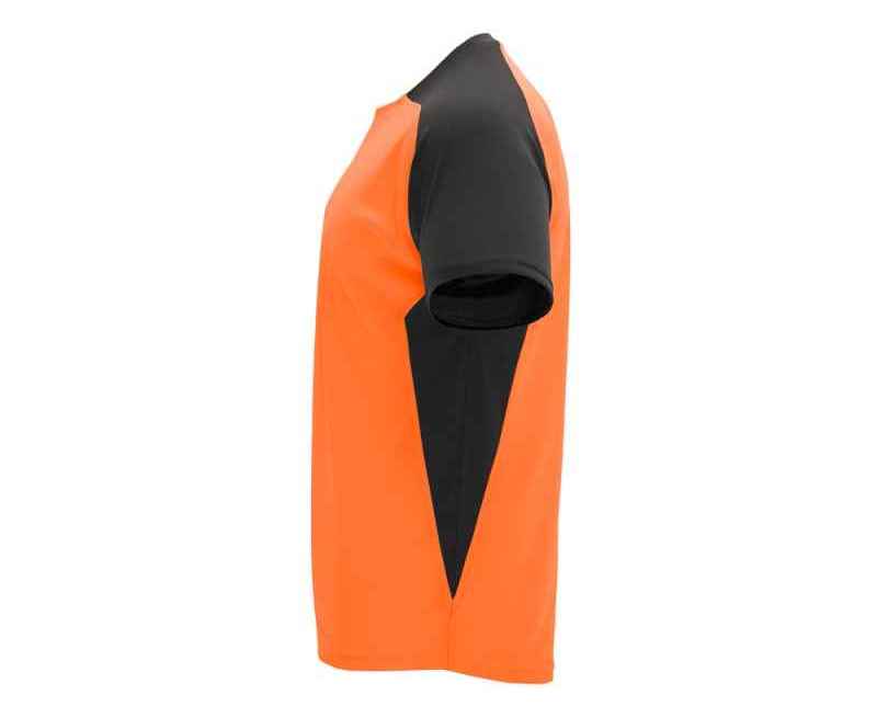 Спортивная футболка с коротким рукавом реглан. Круглый вырез горловины. Контрастные рукава и боковые вставки.