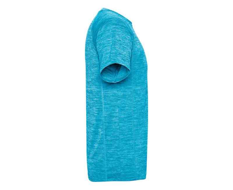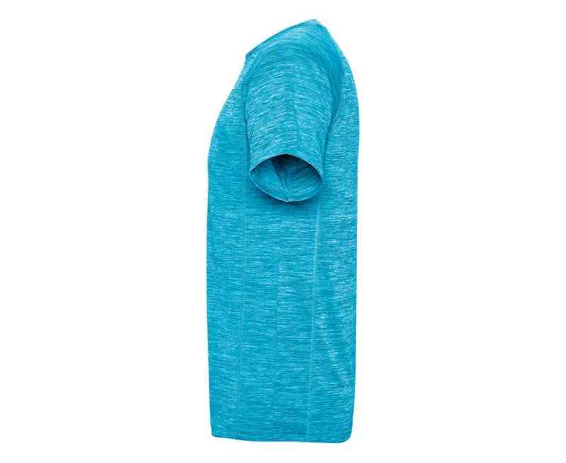 Спортивная футболка из полиэстерового полотна с рукавом реглан. Круглый вырез горловины. Легко сохнущее дышащее полотно с красивым меланжевым эффектом.
