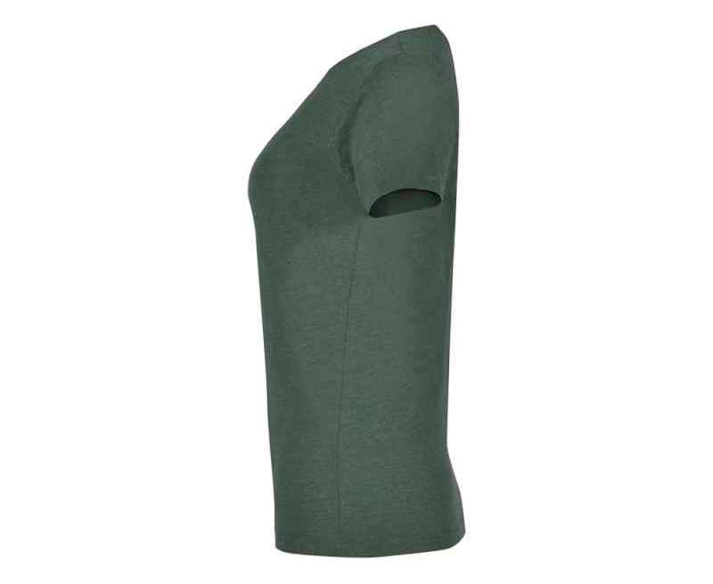 Футболка с коротким рукавом в меланжевом эффекте. Риб горловины 1х1 дополнительно укреплен двойной строчкой.