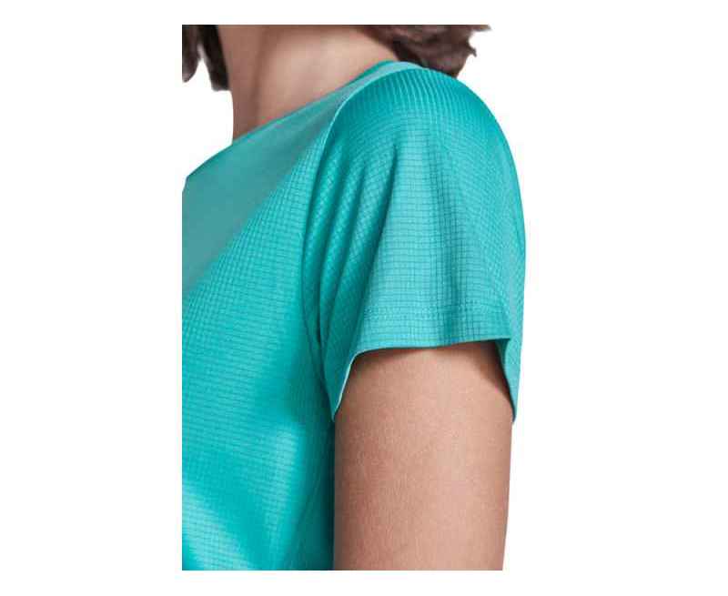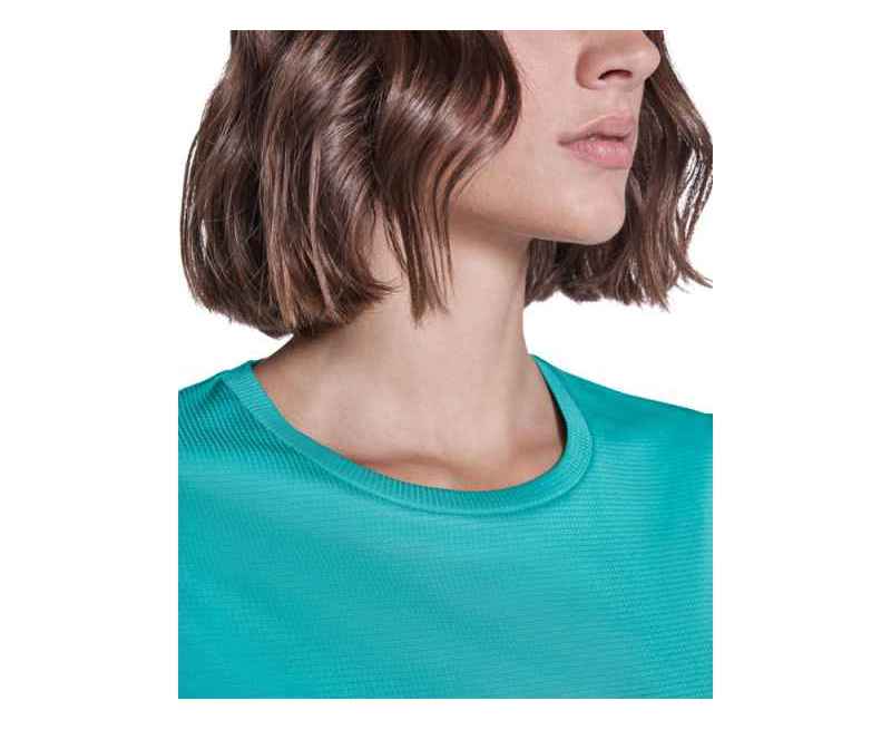 Женская футболка с коротким рукавом из технологичного полотна. Отстрочки в тон. Спинка с удлинением. Боковые швы со смещением вперед.