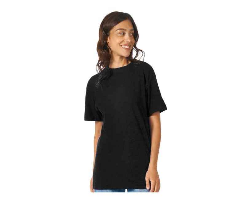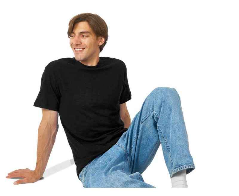 Полотно футболки имеет необычную структуру - с протяжками, но при этом гладкую поверхность, что обеспечивает идеальную поверхность для нанесения: прямая печать, трафаретная или термотрансфер прекрасно ложатся на такое полотно. Декоративная отстрочка по низу рукавов и изделия, а также отстрочка по горловине позволяют футболке дольше сохранять форму.
