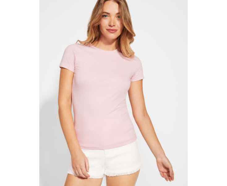 Приталенная футболка с короткими рукавами и боковыми швами. Двойная круглая горловина в рубчик 1 x 1. Усиленные закрытые швы горловины и на плечах. *Съемная этикетка.