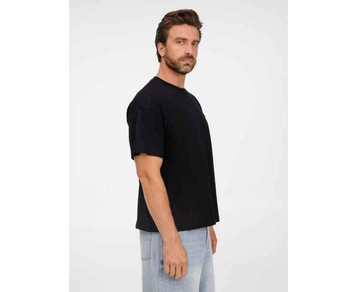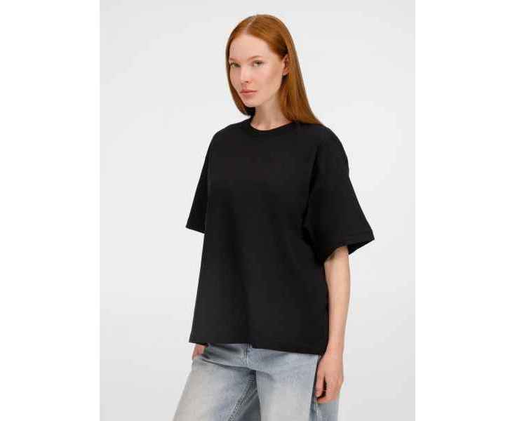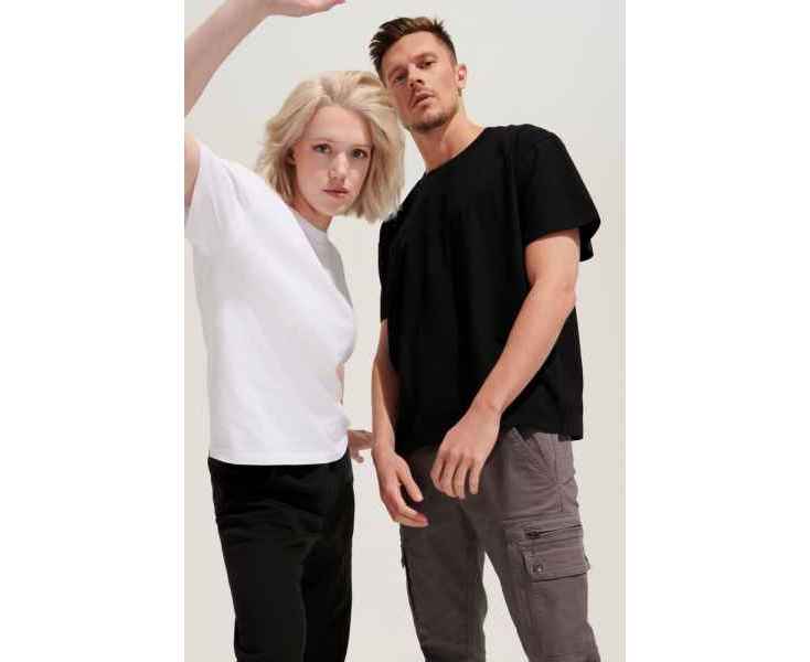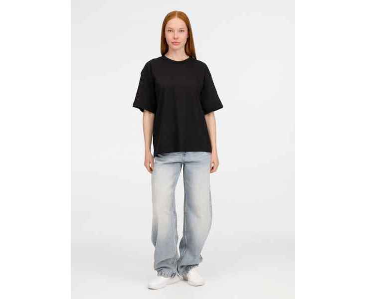 Футболка оверсайз унисекс с круглым вырезом и без боковых швов. Выполнена из смеси переработанного и обычного хлопка. Благодаря повышенной плотности отлично держит форму.