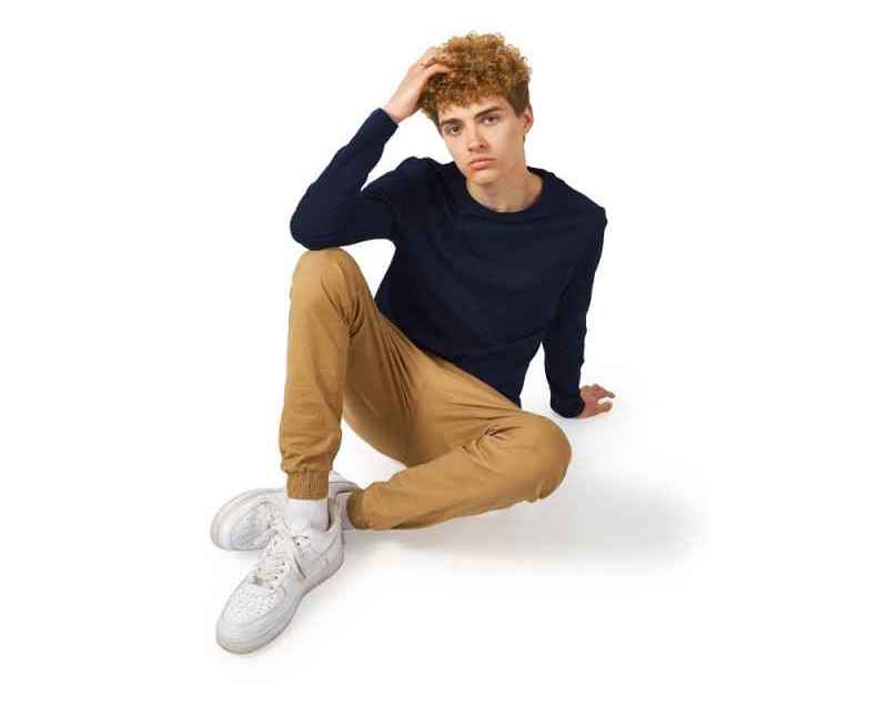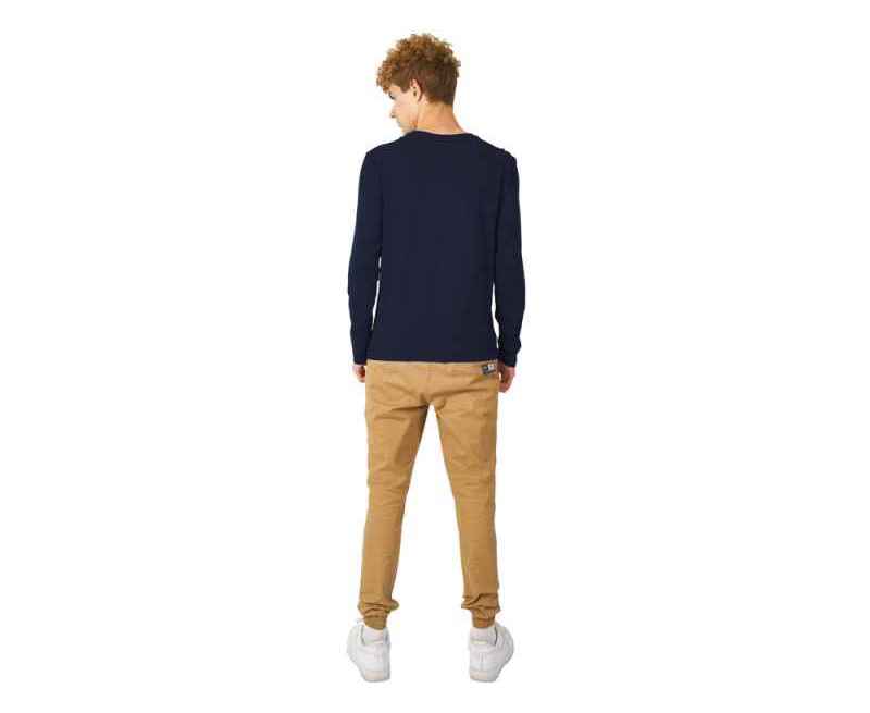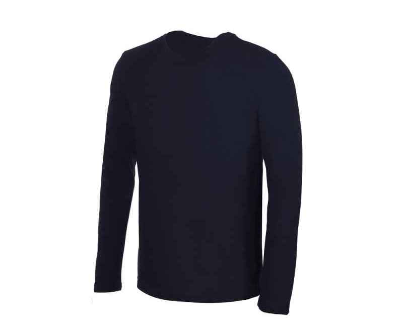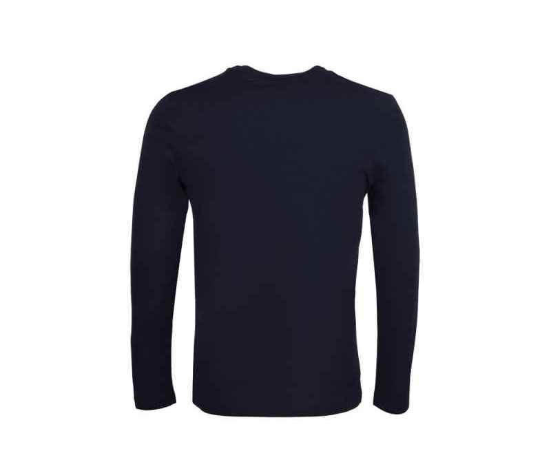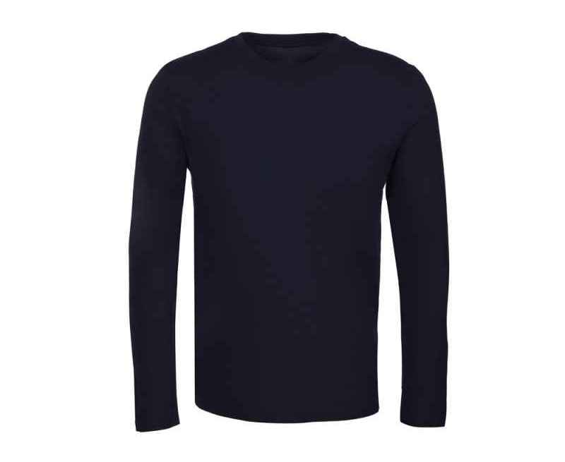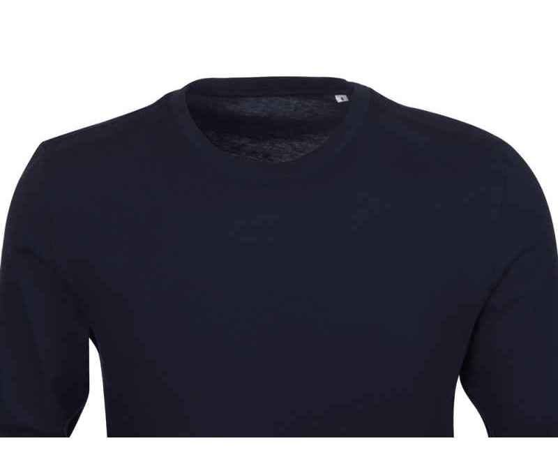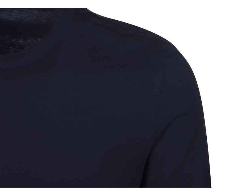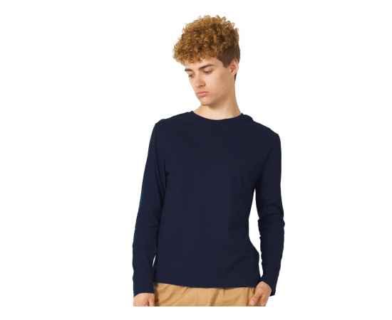 Футболка с длинным рукавом комфортной посадки с боковыми швами. Горловина обработана рибом 1х1 и тесьмой по спинке. Футболка выполнена из хлопкового джерси.