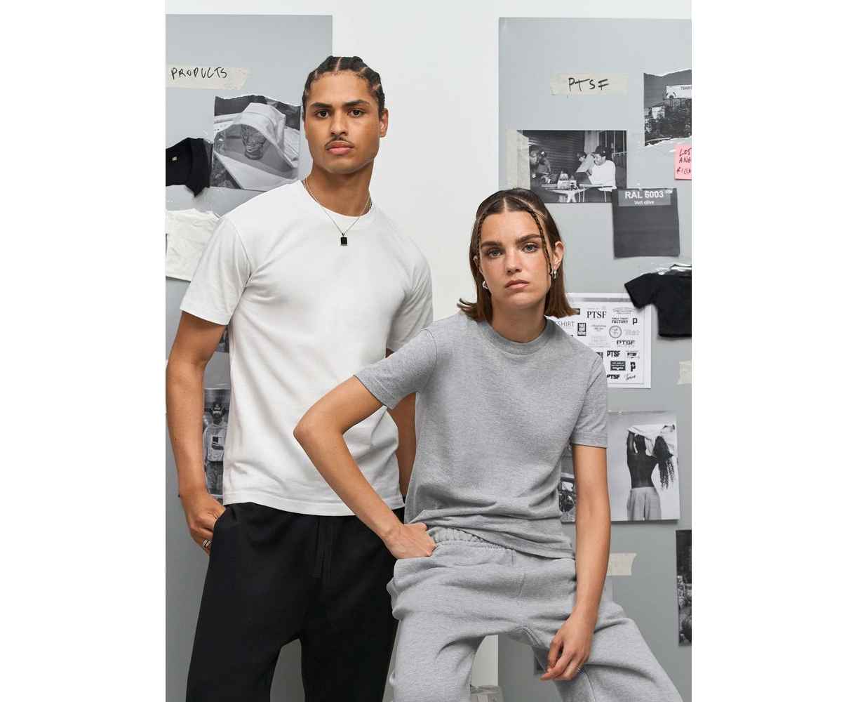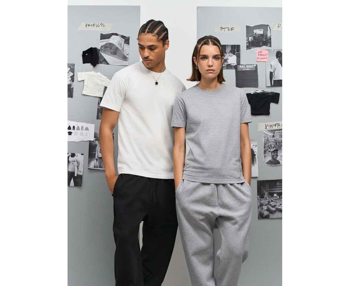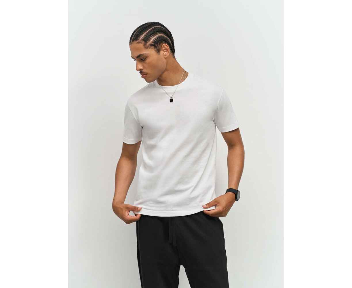 Ткань хорошо держит форму и не просвечивает, при этом футболка остается мягкой и приятной к телу. Особенности обработки волокна и конструкция с заметной высокой горловиной создает аутентичный образ с винтажной фактурой.