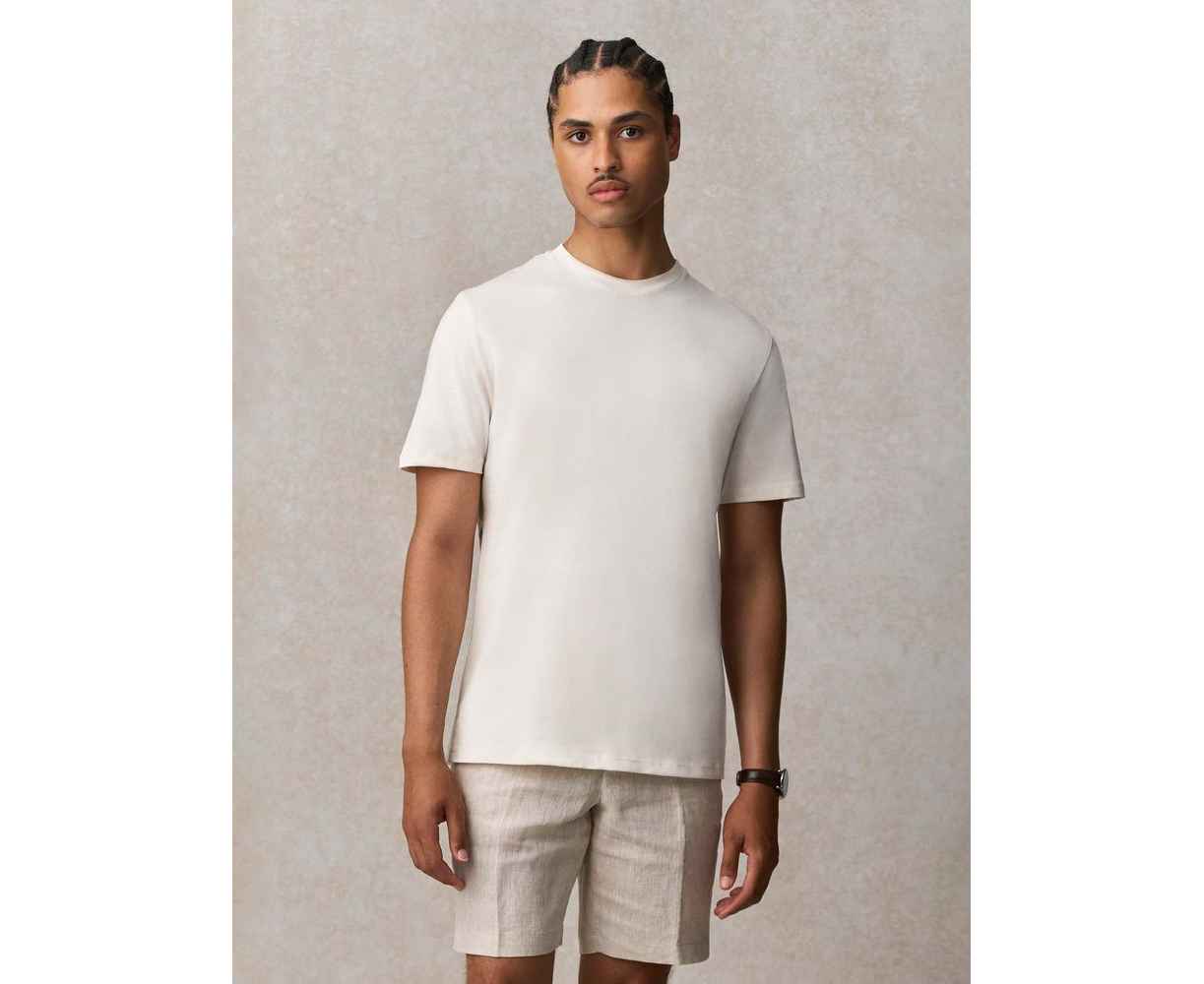 Благодаря идеальным пропорциям гребенного хлопка и переработанного полиэстера в составе, а также дополнительным обработкам ее полотно обладает повышенной мягкостью, шелковистостью и очень приятно на ощупь. Кроме того, футболка меньше мнется, не теряет форму после стирок и обладает высоким показателем Qmax — коэффициента мгновенной теплопроводности, который показывает, как быстро ткань забирает тепло от кожи. Именно он обеспечивает ощутимый эффект свежести и прохлады при первом прикосновении к ткани.