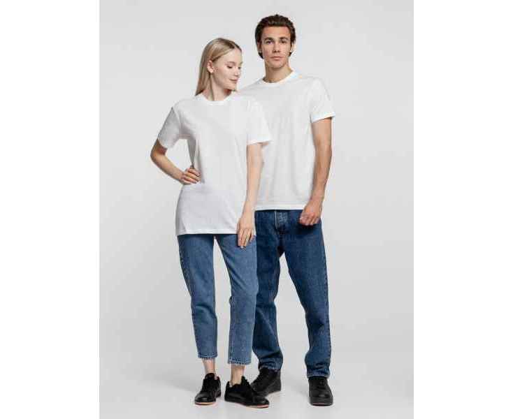 Базовая футболка унисекс прямого силуэта без боковых швов (размеры XS–4XL) или с боковыми швами (размеры 5XL–6XL).