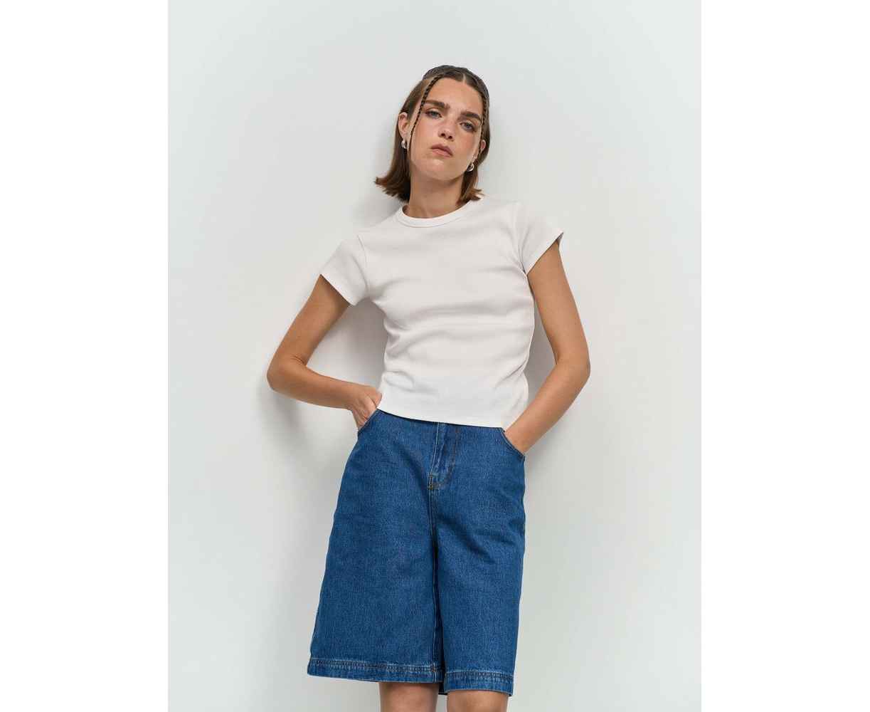 Приталенная женская футболка в рубчик из гребенного хлопка.