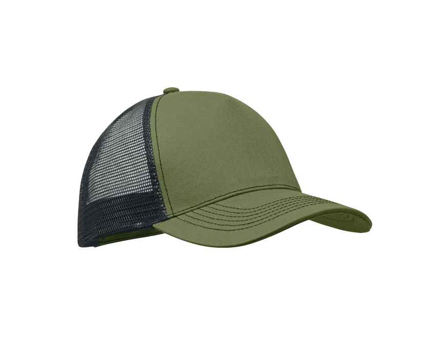 Бейсболка 5-клинка с передней панелью и козырьком из хлопка 250 г/м², задней сетчатой вставкой из полиэстера и застежкой на липучке.