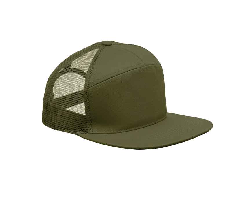 Бейсболка с плоским козырьком из хлопка 235 г/м² с сетчатой задней частью из полиэстера и пластиковой застежкой.