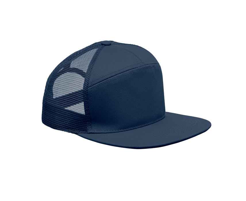 Бейсболка с плоским козырьком из хлопка 235 г/м² с сетчатой задней частью из полиэстера и пластиковой застежкой.