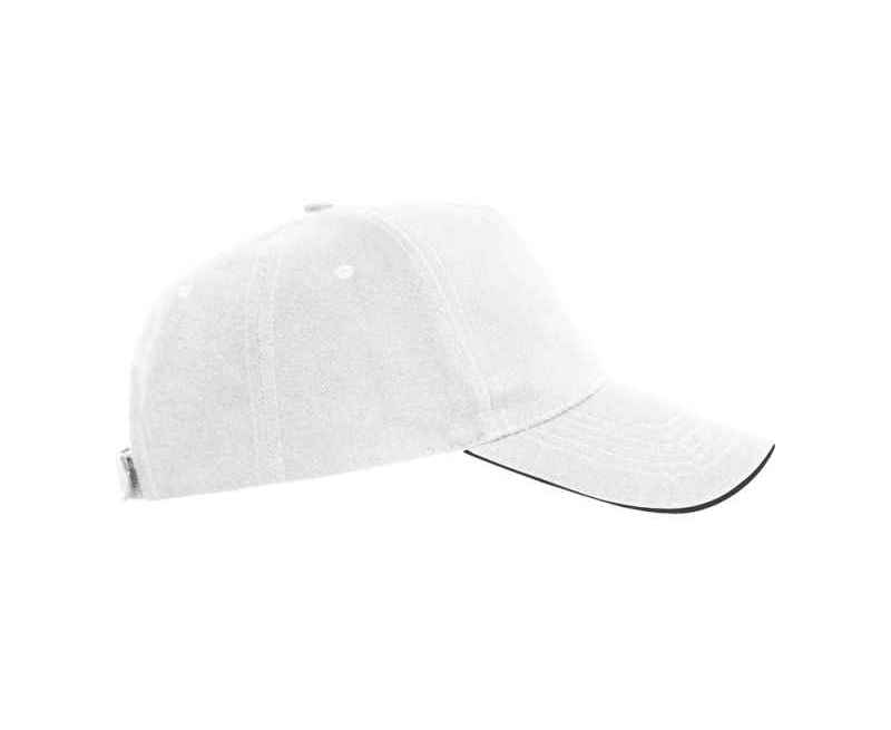 Бейсболка из 5 панелей с контрастным сэндвичем. Четыре вышитых вентиляционных люверса. Застежка на липучку.