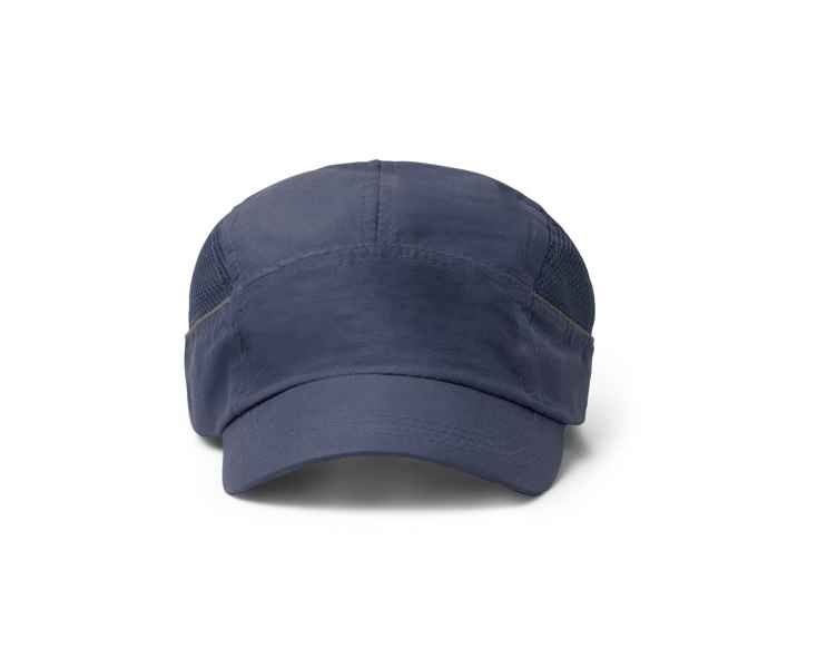 Легкая эргономичная спортивная кепка из микрофибры RPET. Сетчатая ткань по бокам для вентиляции и лента от пота, специально разработанная для спорта. Задняя часть оснащена регулировкой на липучке и светоотражающей лентой по бокам.