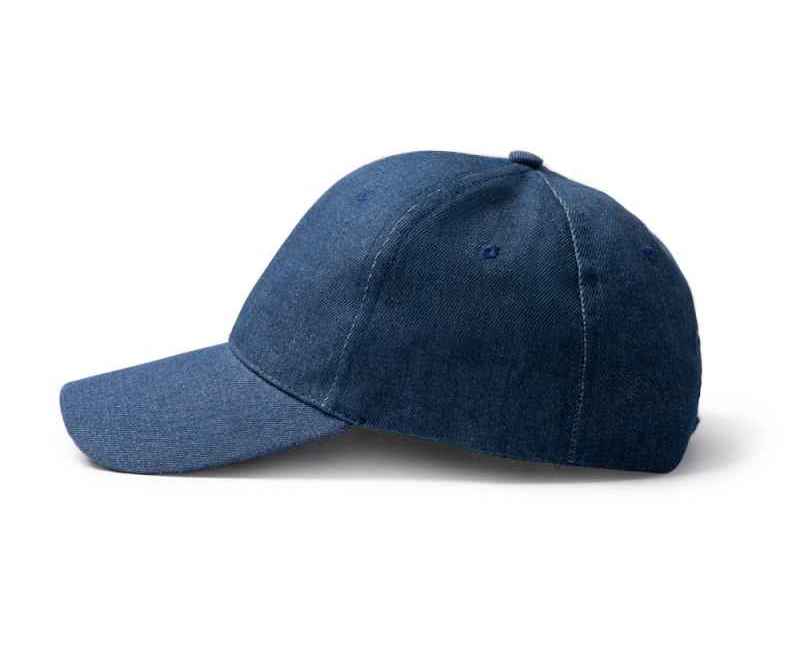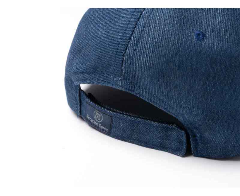 Бейсболка 6 панелей из переработанной джинсовой ткани. Вышитые вентиляционные отверстия.