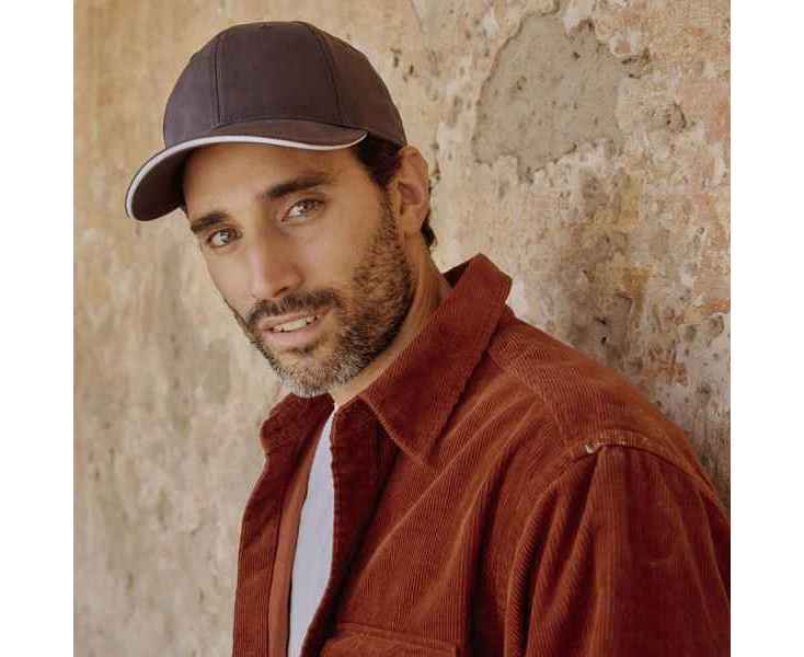 Бейсболка LIBERTY SANDWICH-S из смеси органического (80%) и переработанного (20%) хлопка - ,одно из лучших решений для промомероприятий и корпоративной формы:- 6 клиньев,- 6,вышитых,люверсов для лучшей вентиляции,- изогнутый козырек «сэндвич» с декоративным кантом,- металлическая застежка.Цвет бейсболки близкий к Pantone Black 6 С, цвет канта близкий к Pantone,200 C. ,,,58,5 см - средний размер, с помощью застёжки его можно увеличить или уменьшить до необходимого.