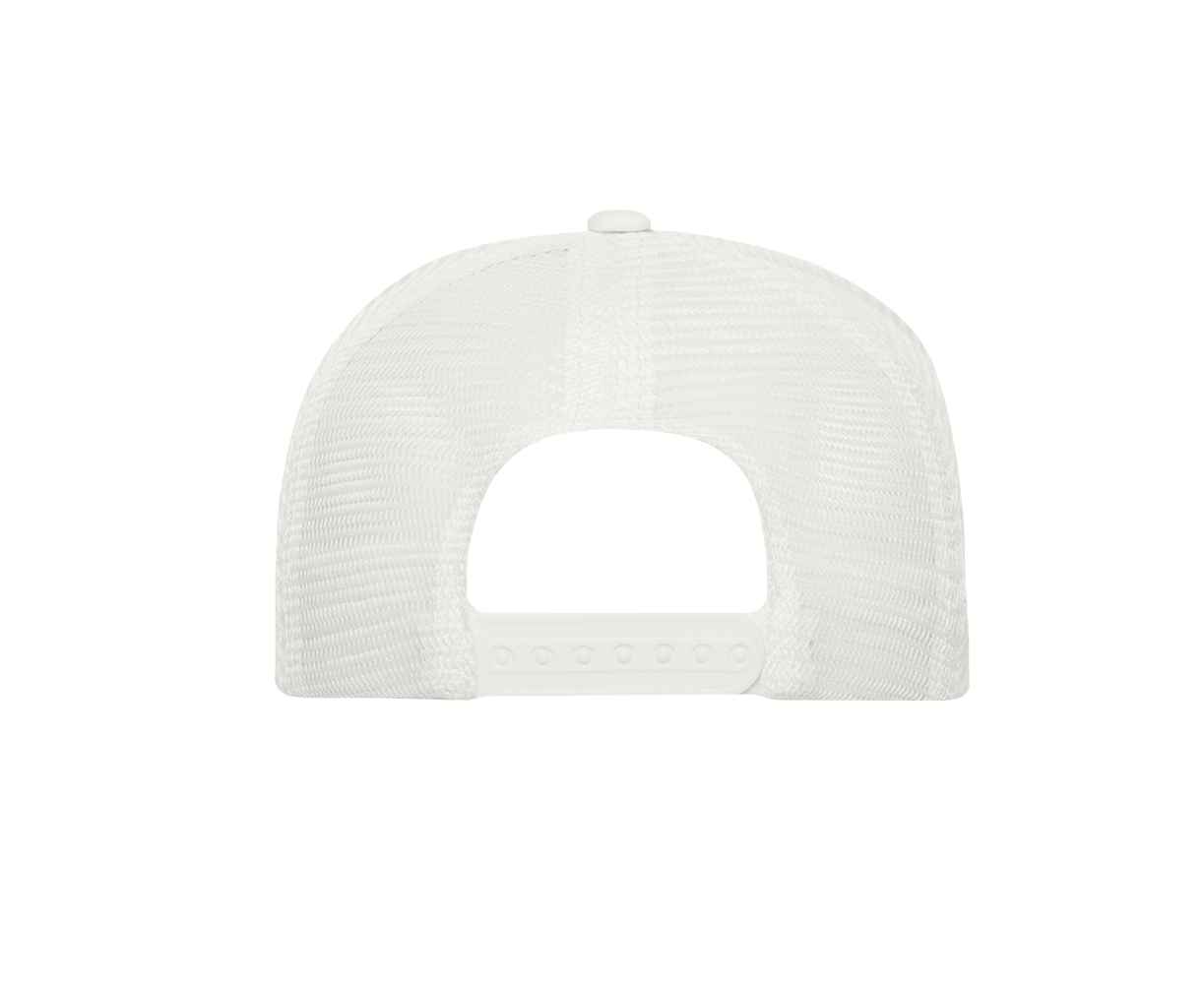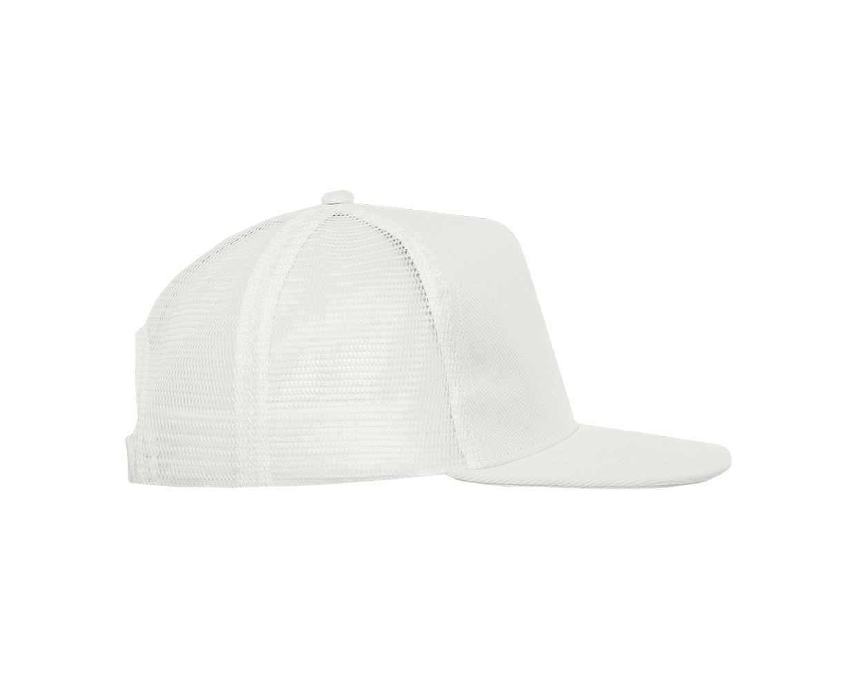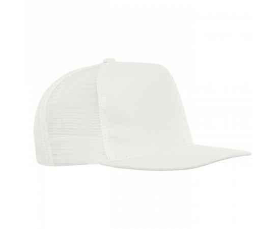 Бейсболка-пятиклинка с прямым жестким козырьком и пластиковой регулируемой застежкой, боковые клинья выполнены из жесткой сетки.